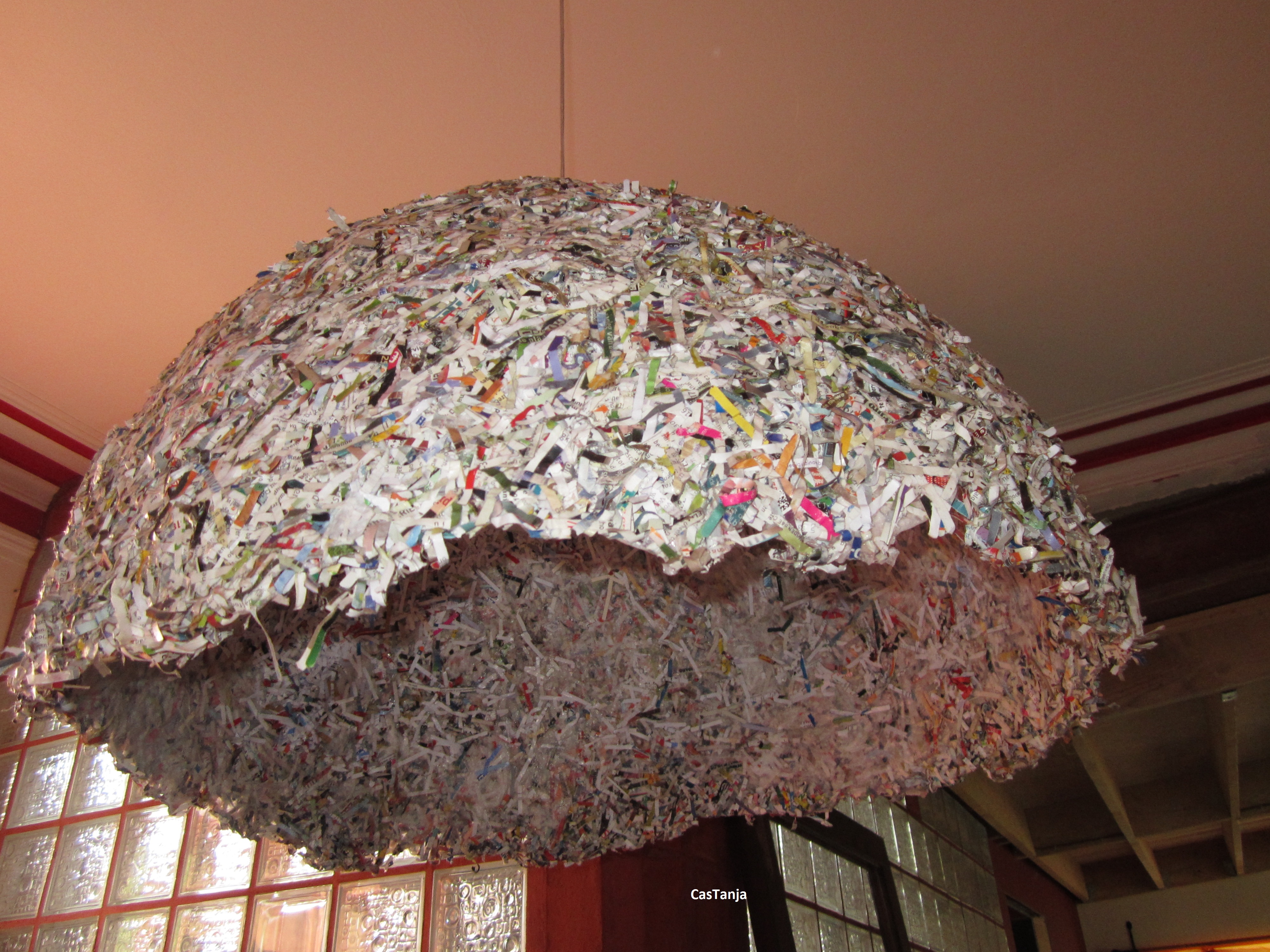 Hanglamp 2014: versnipperd papier en lijm.