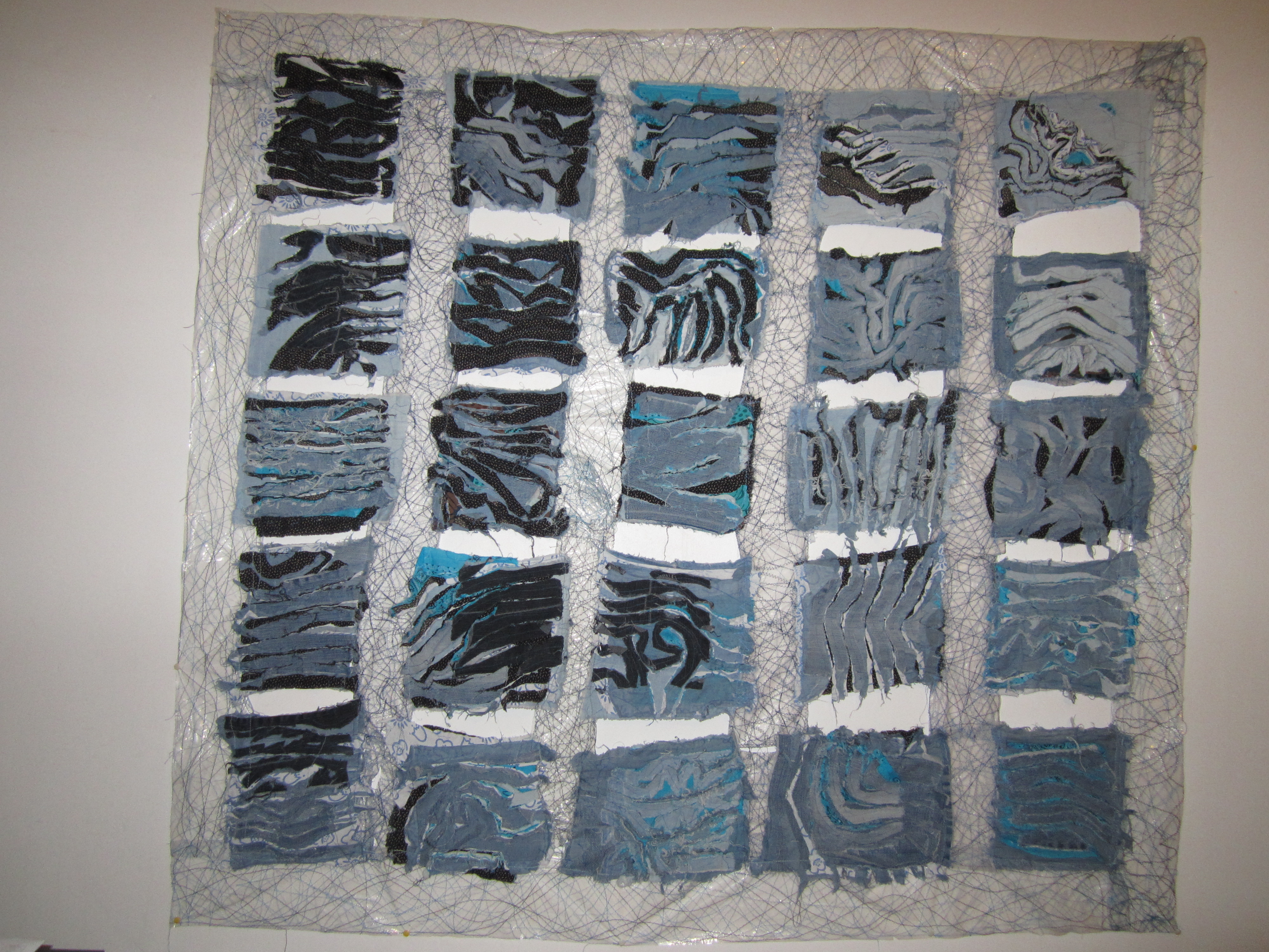 Grote Golf 2011: Afmetingen 140 op 145 cm. Inspiratie Hokusai. Hoofdzakelijk in jeans en andere textiele materialen.