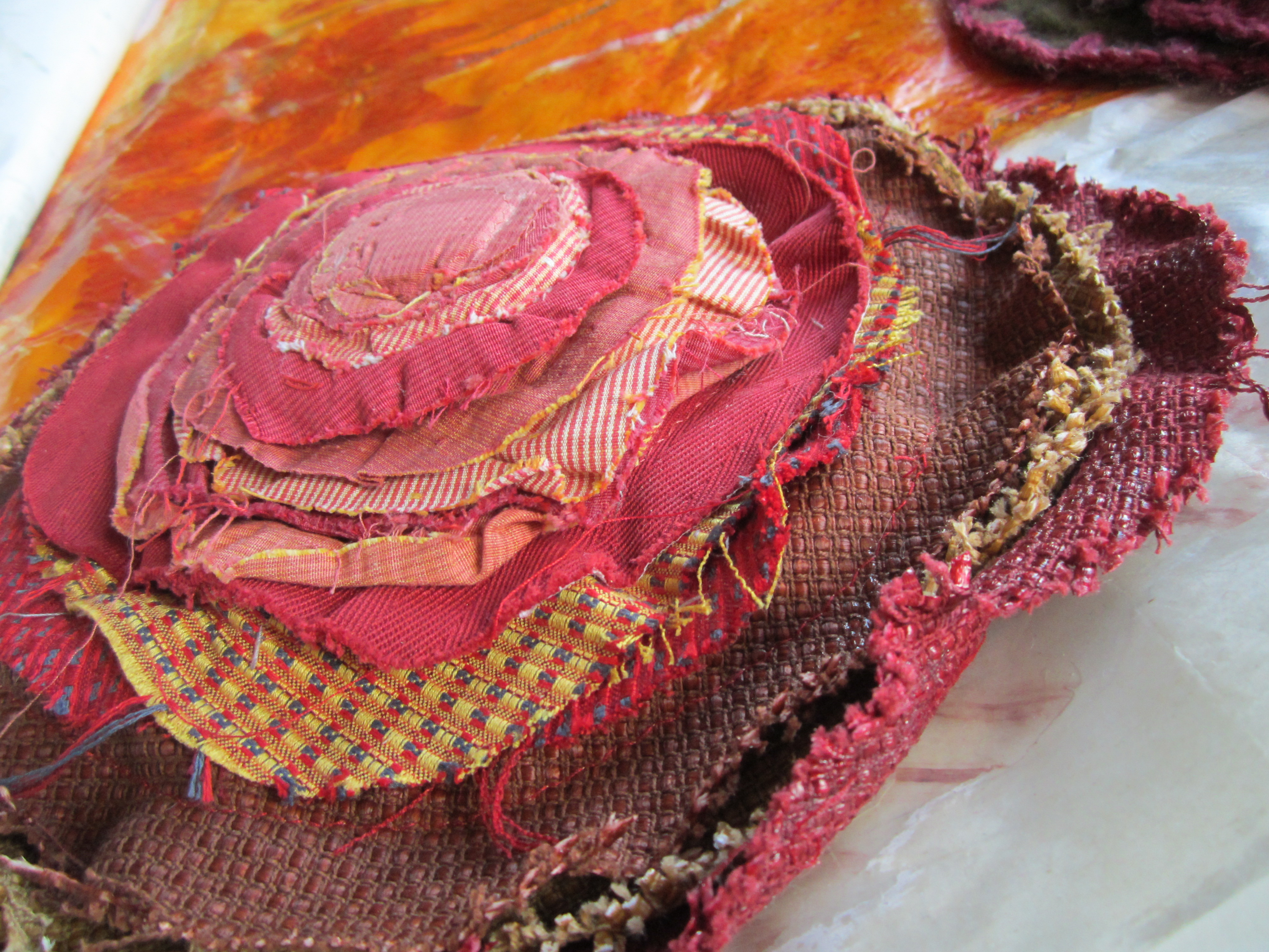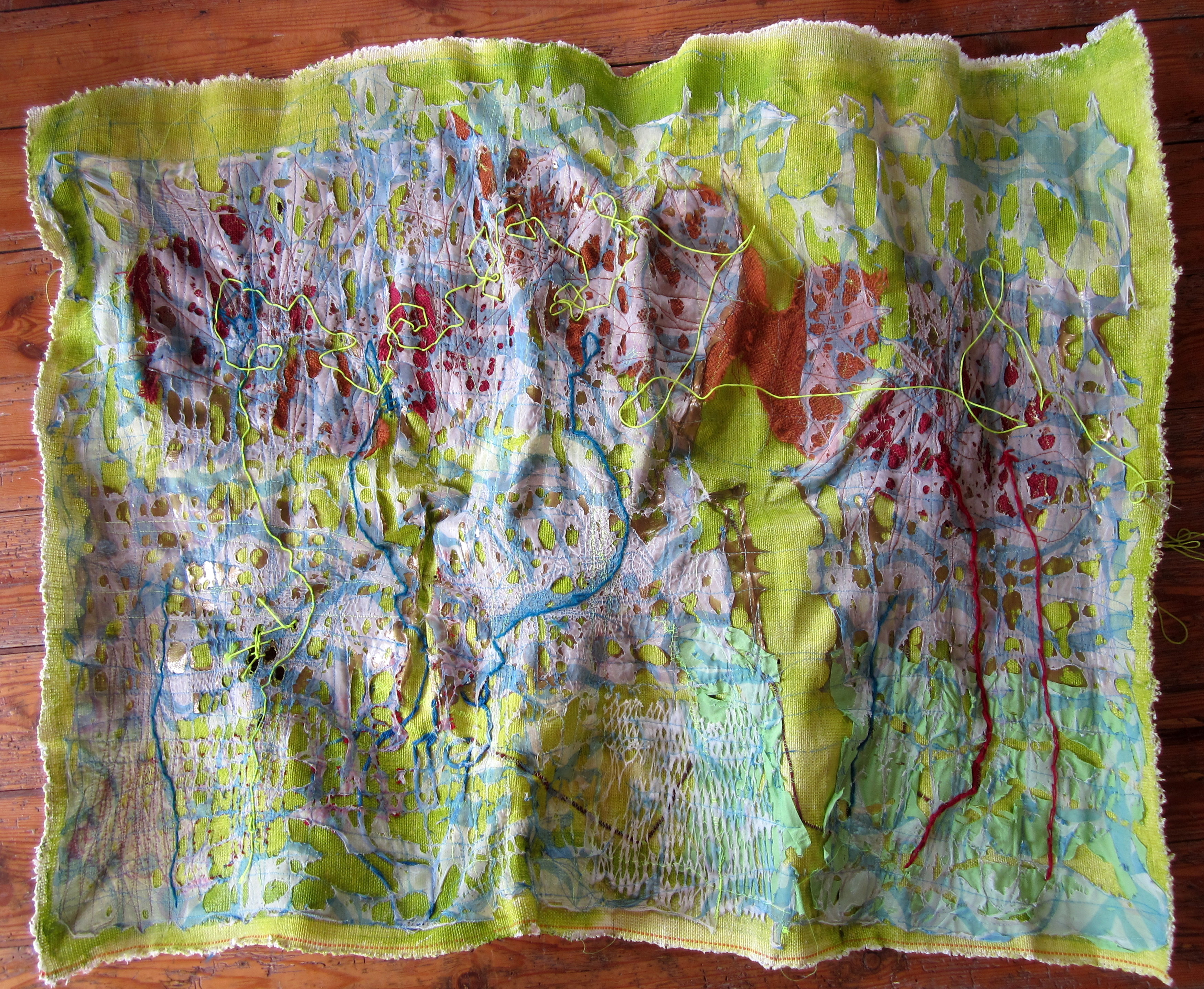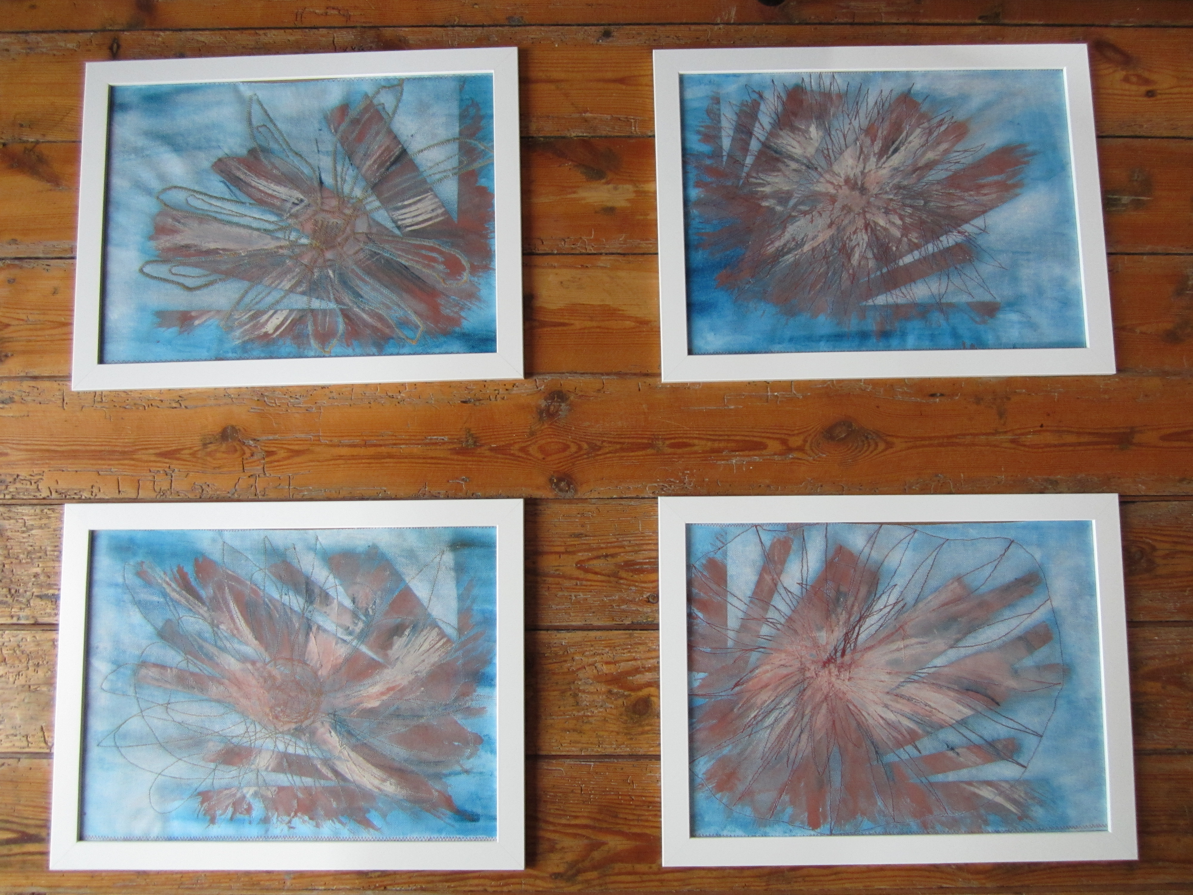 Wildbloemen 2012: Afmetingen 28 op 38 cm * 4 stuks. Schilderen en naaien op canvas