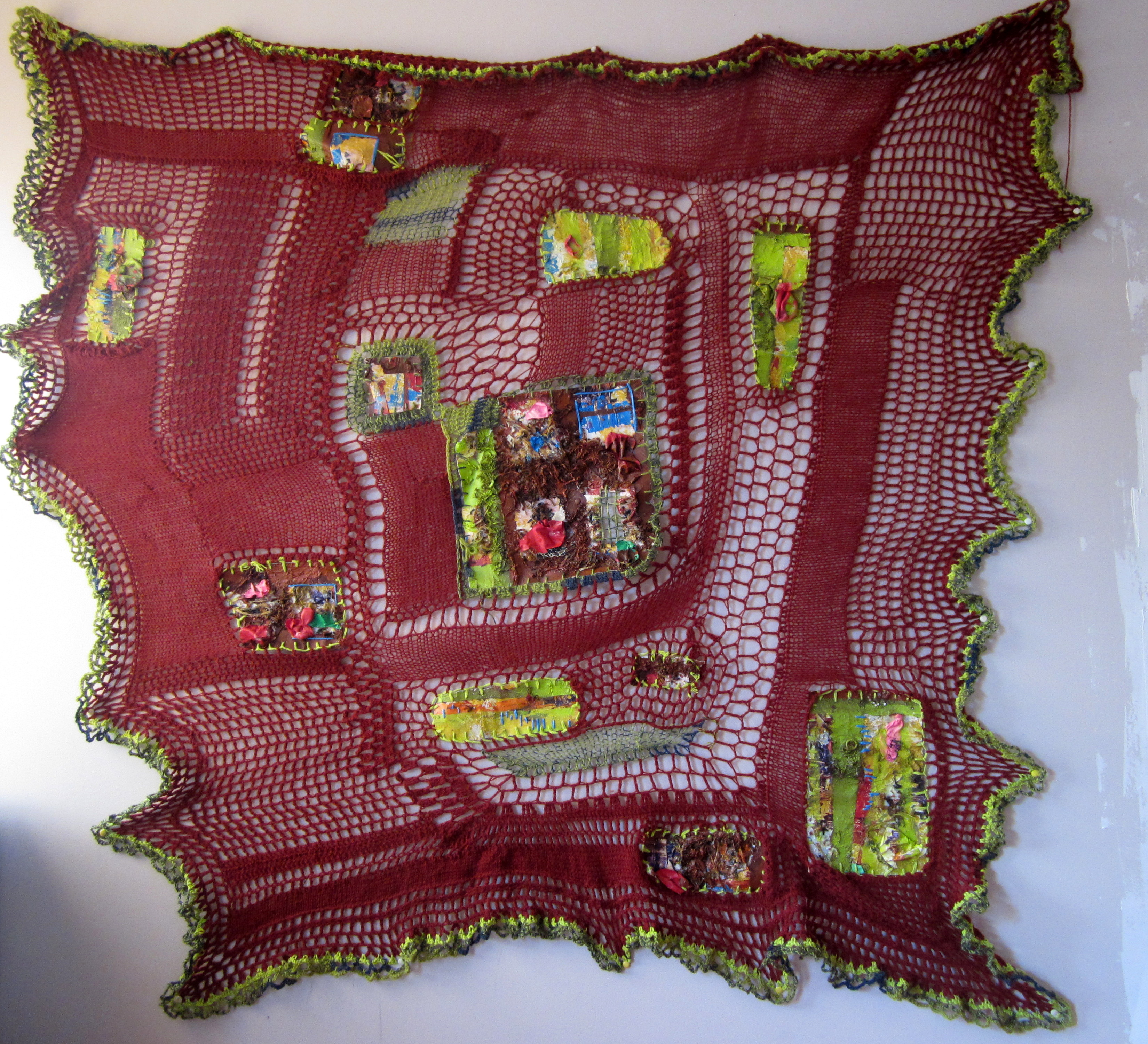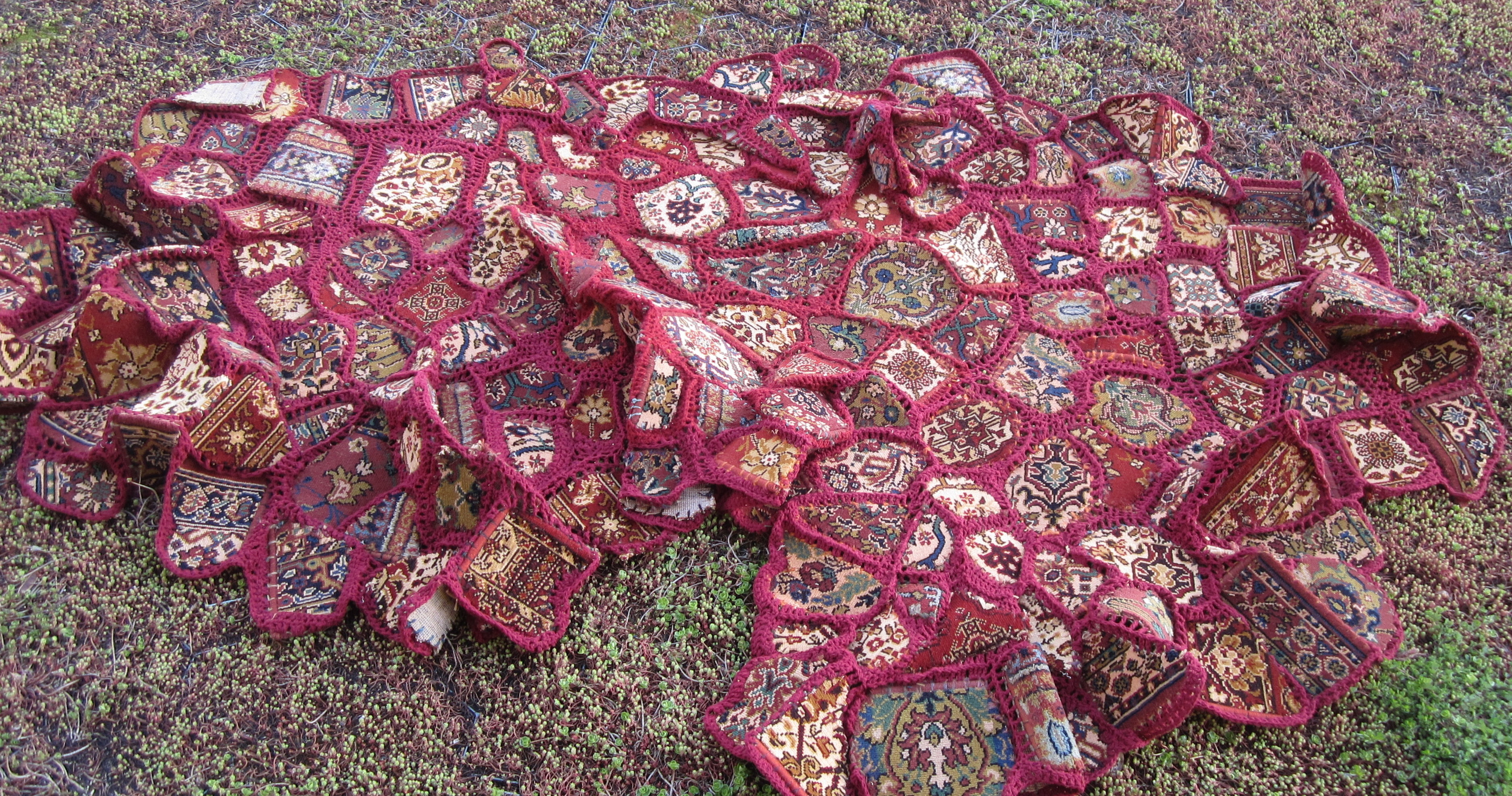 Onverdoofd bidden 2016: gebedstapijten, gecombineerd met haak en naaiwerk.