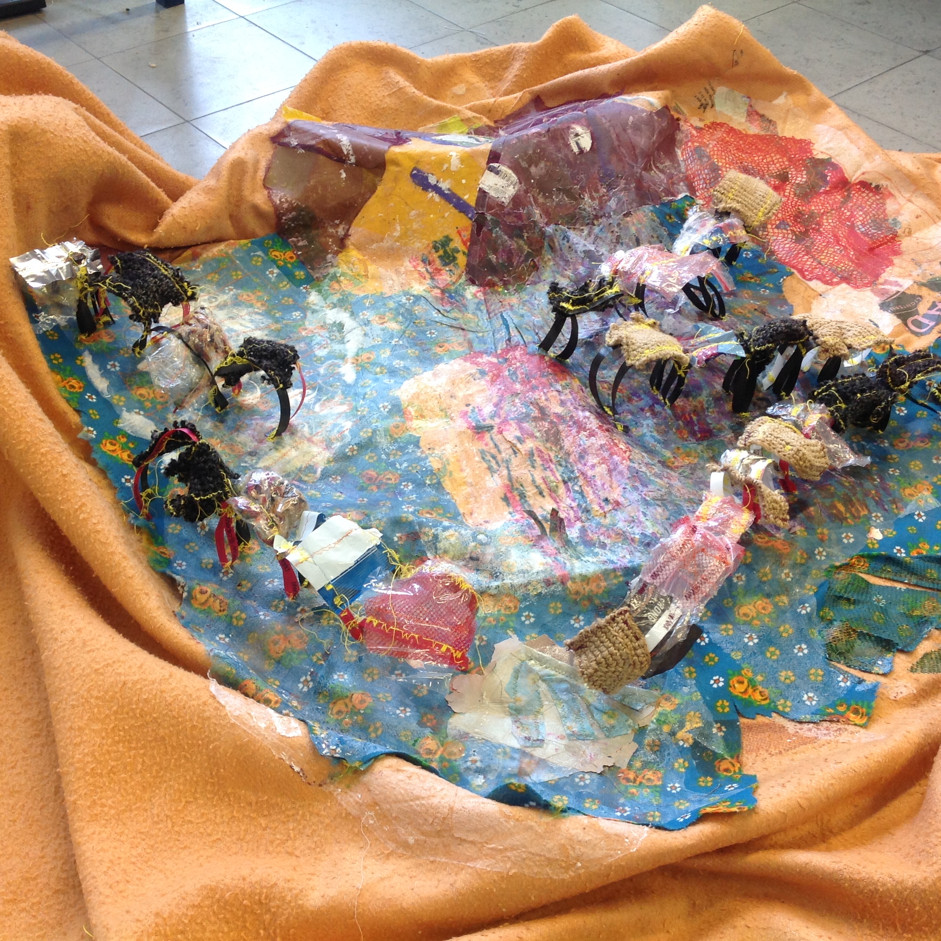 Paddestoel 2013: Afmetingen 140 op 95 cm. Textiele en plastieken materialen.