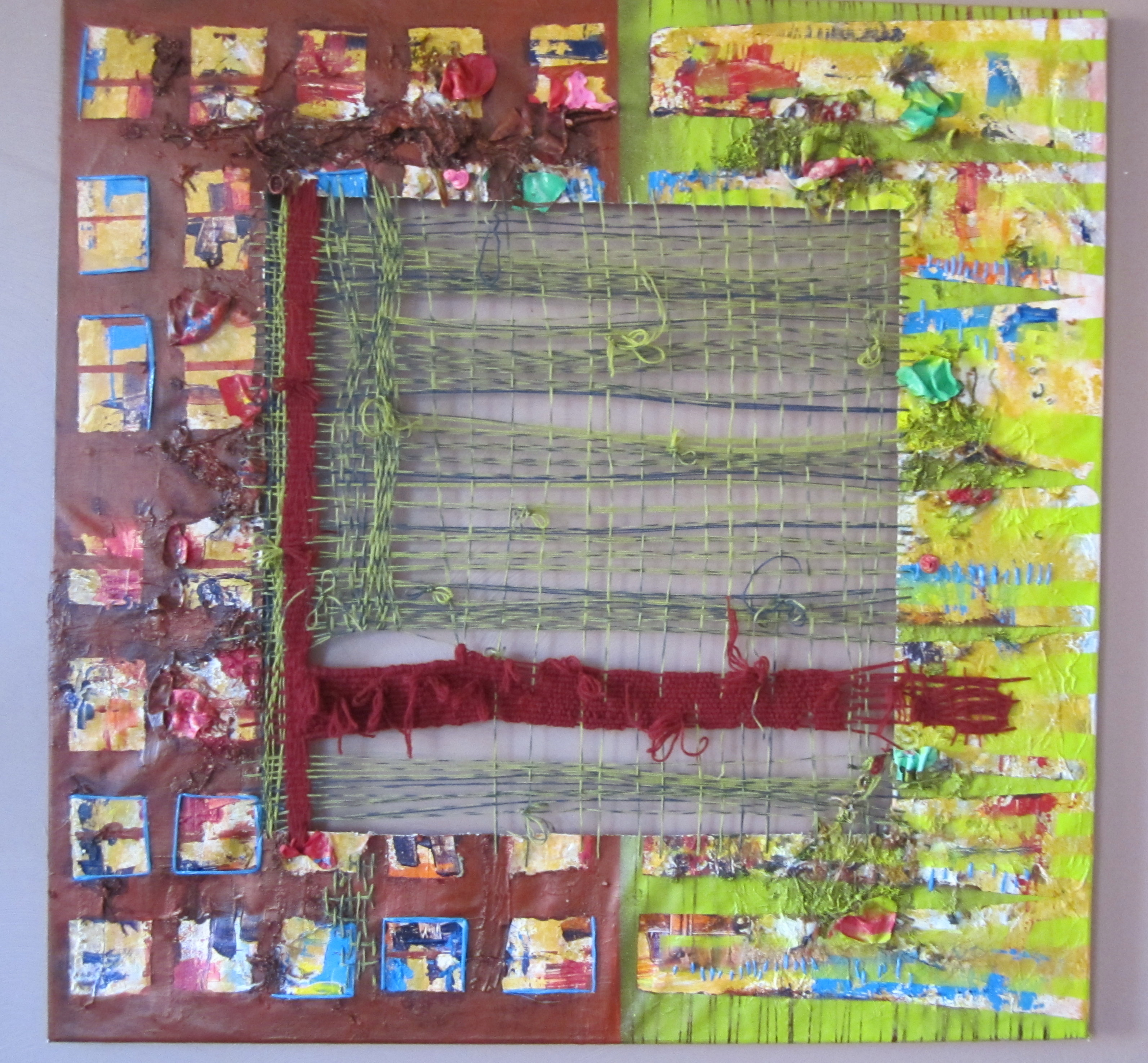 Wonen en water veweefd 2016: Schilderij boorden afgewerkt met weeftechnieken